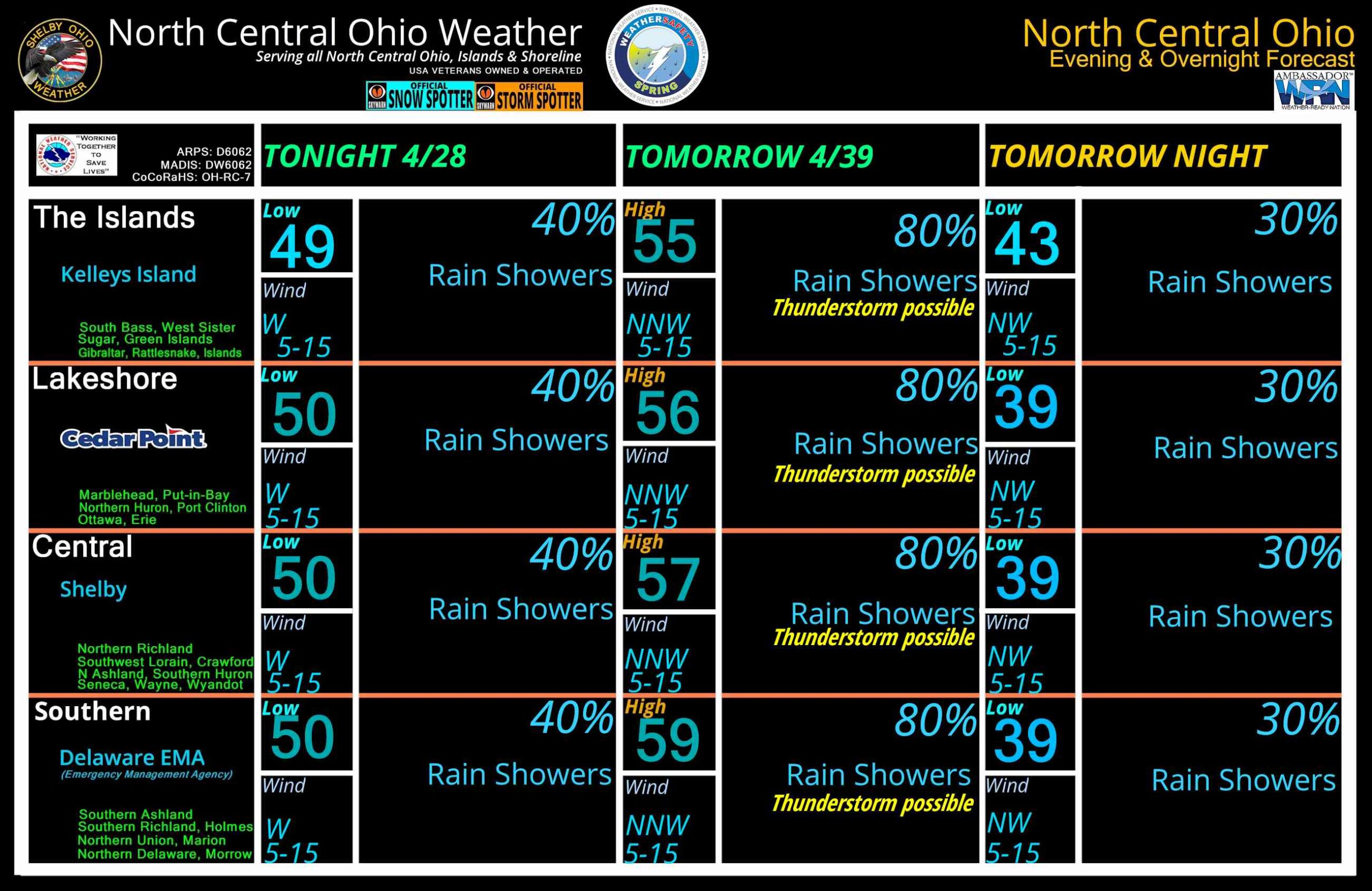 North Central Ohio Overnight forecast April 28 – 29, 2026