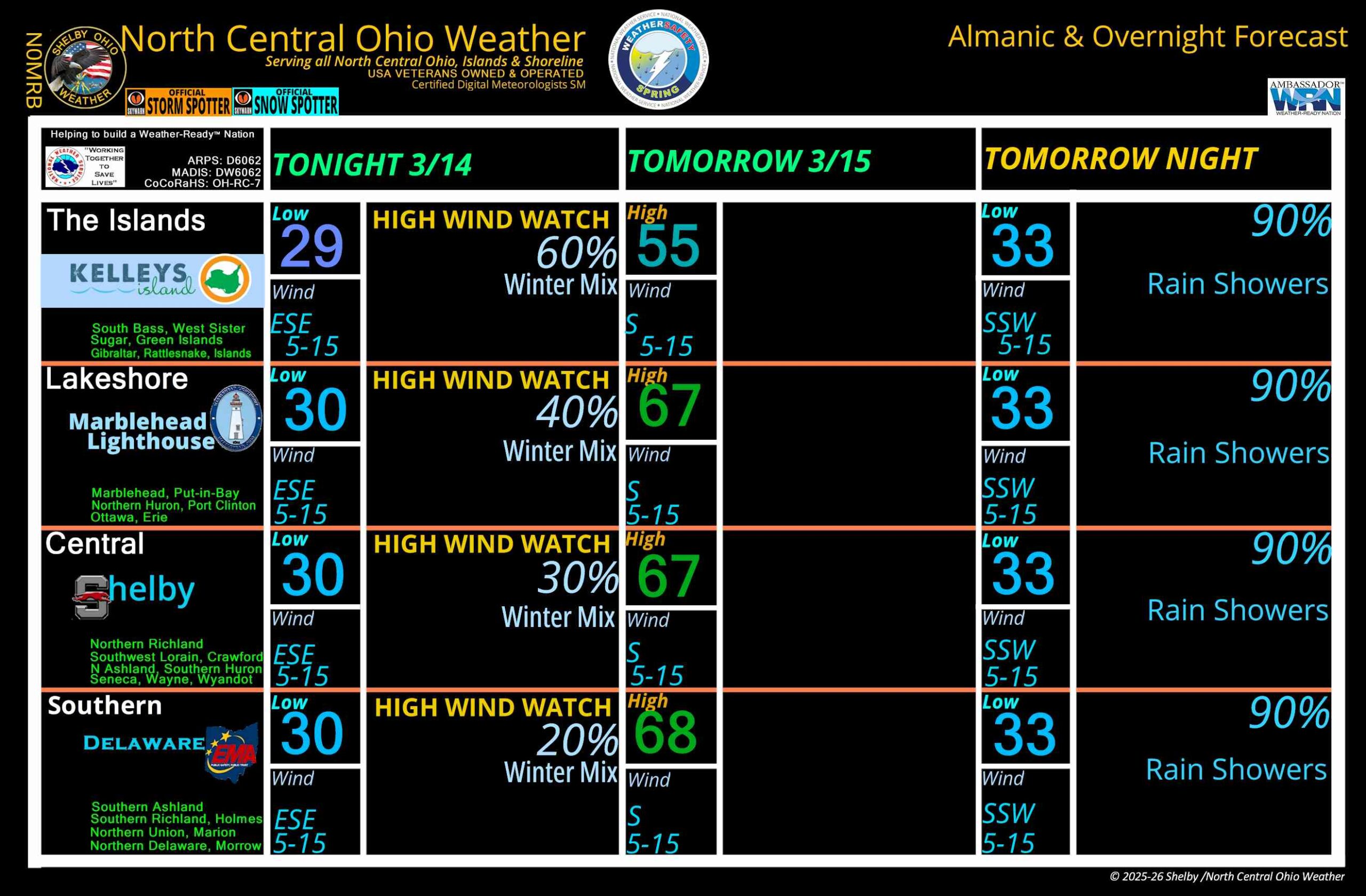 North Central Ohio Overnight forecast March 14-15, 2026
