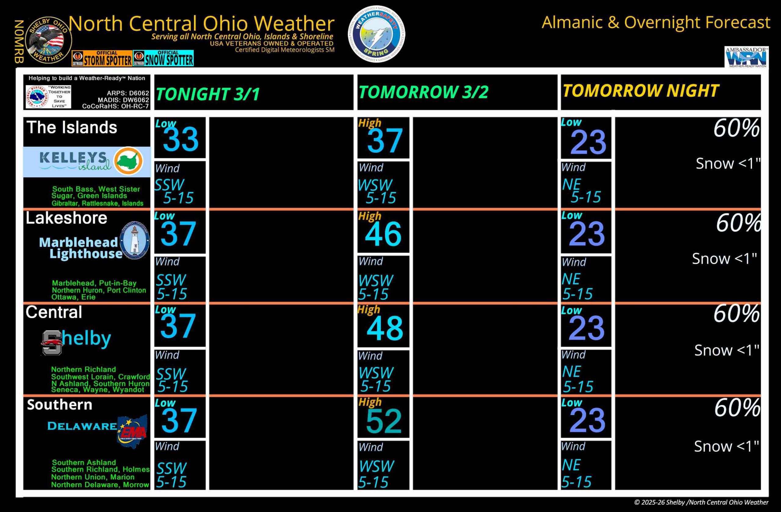 North Central Ohio Overnight forecast March 1-2, 2026